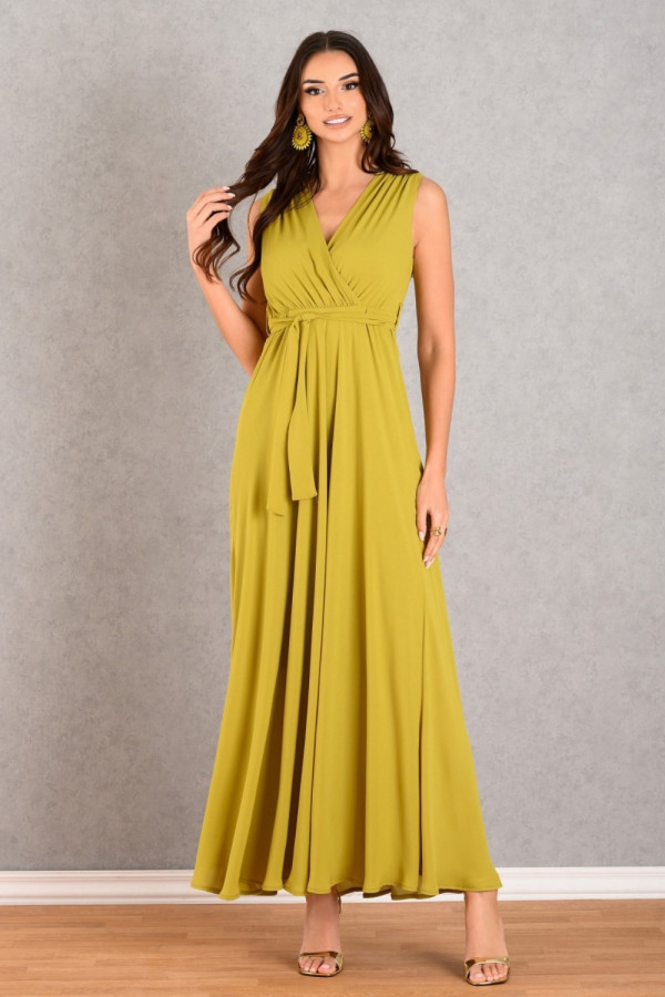 Ανανεώστε την καλοκαιρινή σας γκαρνταρόμπα με αυτό το εντυπωσιακό γυναικείο μάξι φόρεμα Derpouli σε μοντέρνα lime απόχρωση. Είναι αμάνικο σχέδιο με κρουαζέ ντεκολτέ που αναδεικνύει τη θηλυκότητα σας. Στη μέση πίσω έχει λάστιχο για καλύτερη εφαρμογή ενώ η ζώνη από το ίδιο ύφασμα προσφέρει έξτρα σταθερότητα και κομψή λεπτομέρεια. Ποιοτικό ύφασμα με κίνηση και άνεση. Είναι φοδραρισμένο. Φορέστε αυτό το φόρεμα σε ένα γάμο ή μια επίσημη εμφάνιση και θα εντυπωσιάσετε.