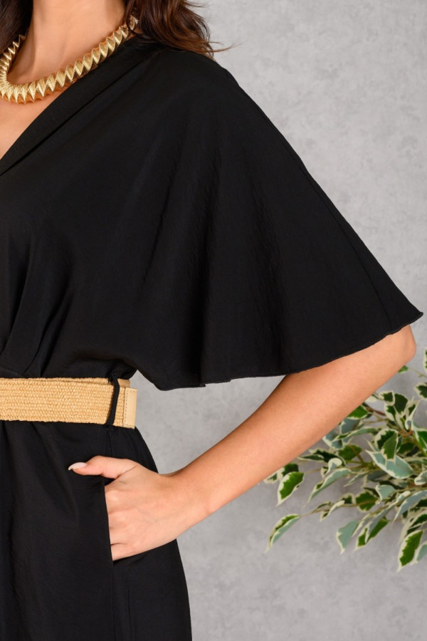 Εντυπωσιακό γυναικείο φόρεμα maxi Derpouli. Ε΄ναι με "V" ντεκολτέ και κρουαζέ κόψιμο στο στήθος, που αναδεικνύει τη θηλυκότητα σας. Με άνετα μανίκια που προσφέρουν ελευθερία κινήσεων και στη μέση έχει ψάθινη ζώνη που τονίζει τη σιλουέτα σας. Κατασκευασμένο από ανάλαφρο ύφασμα που εξασφαλίζει άνεση και υπέροχη αίσθηση. Ιδανικό για καθημερινές εμφανίσεις ή μια εκδήλωση.